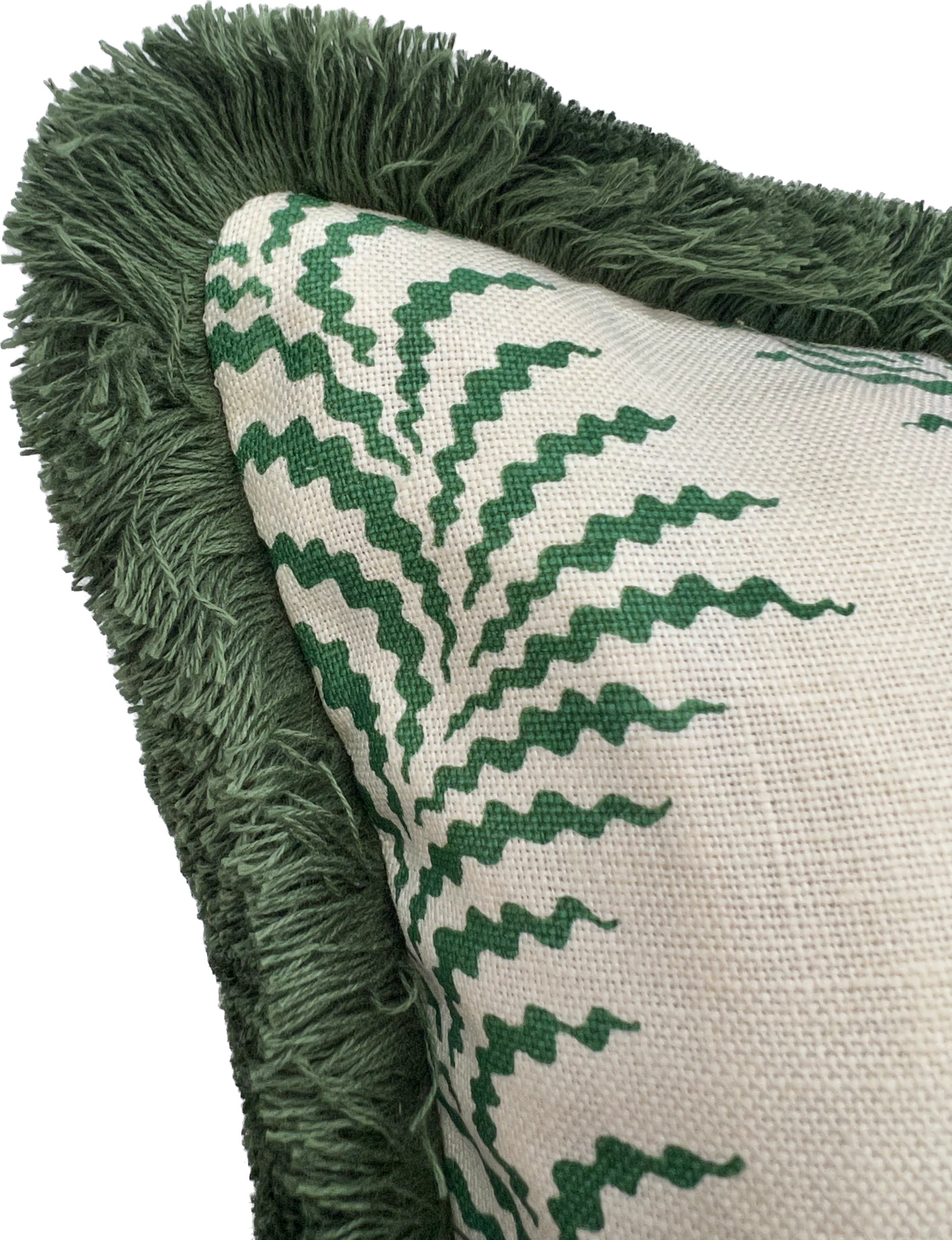 I’ve made cushions in this fabric before with green fringes and green piping but they can be any way you like!