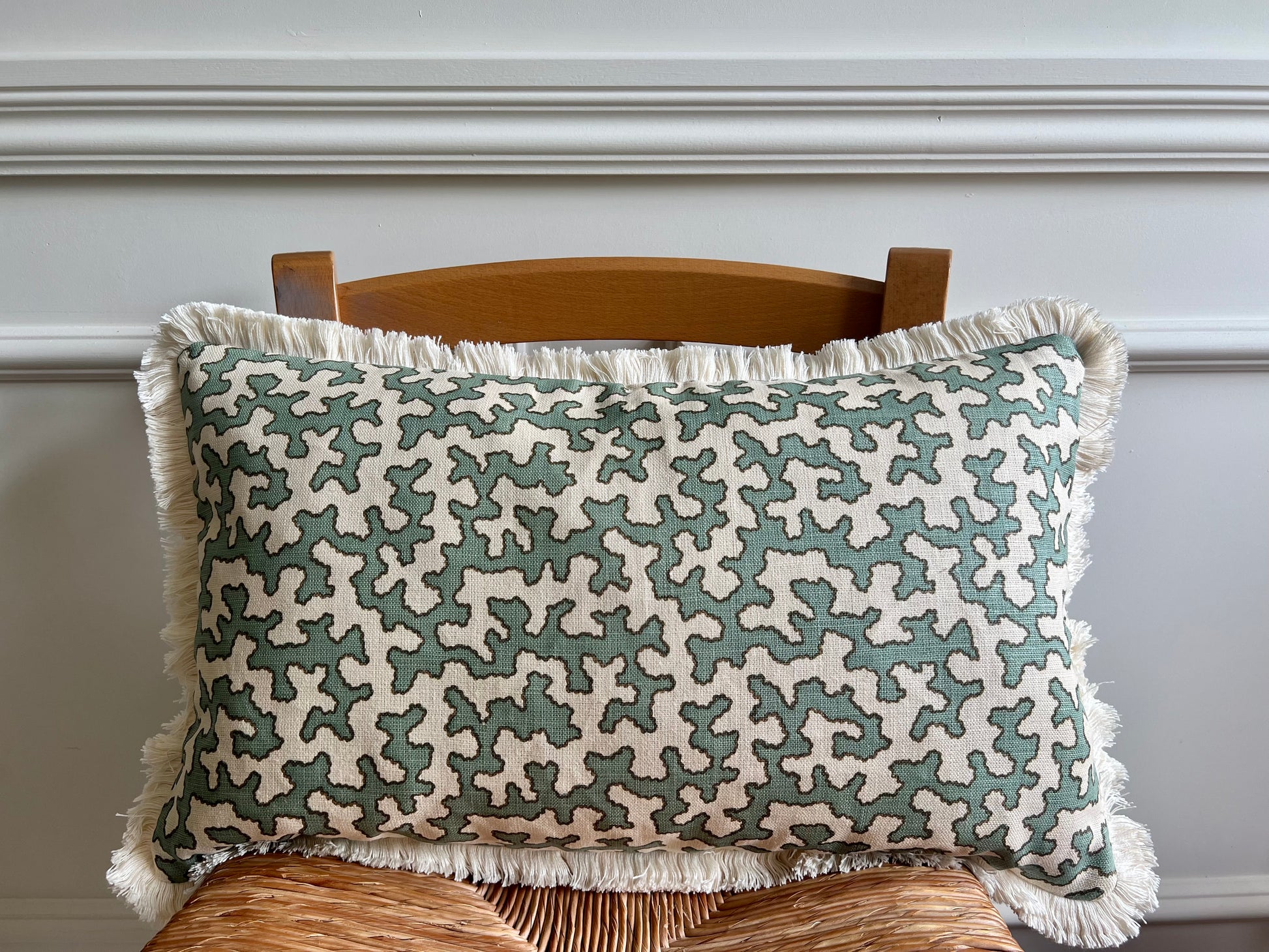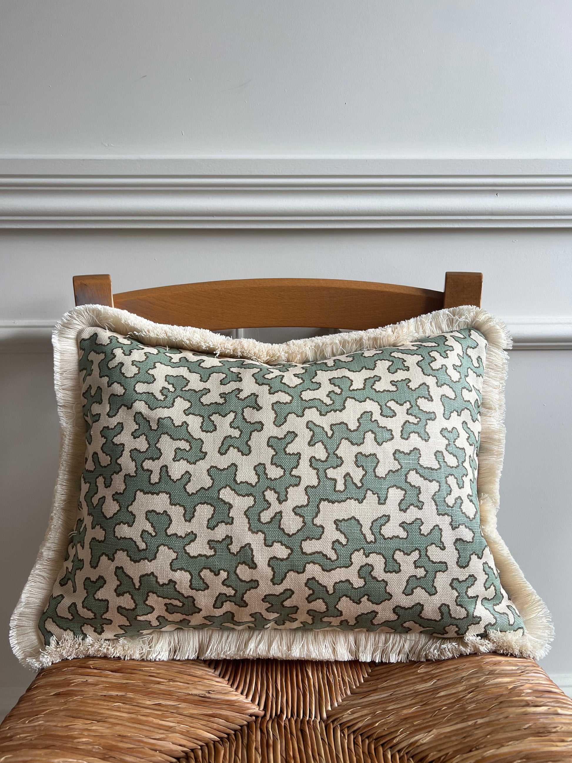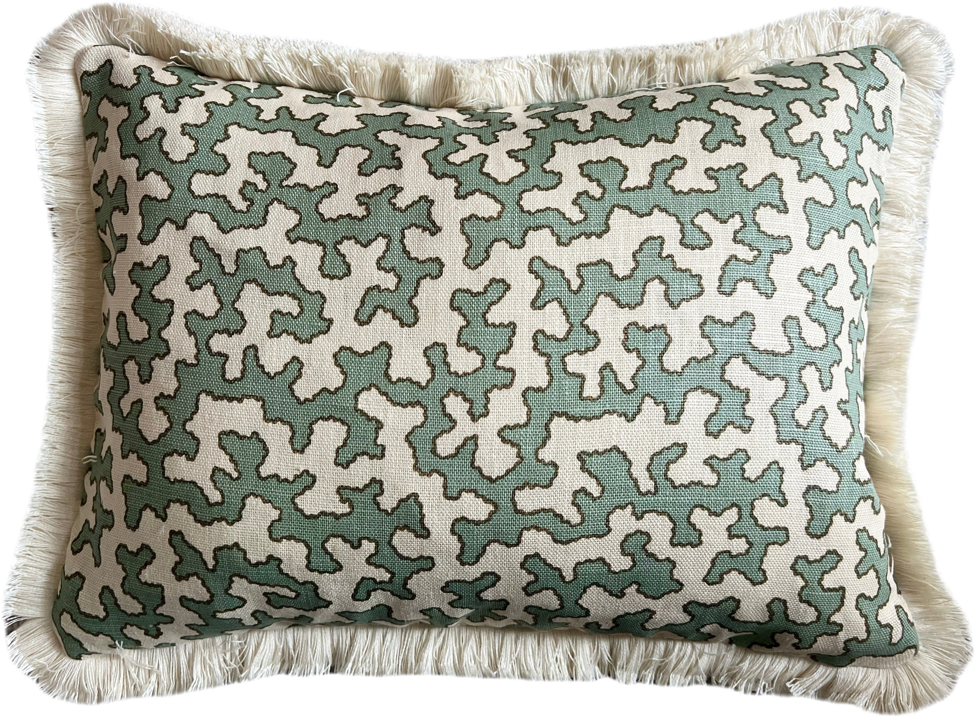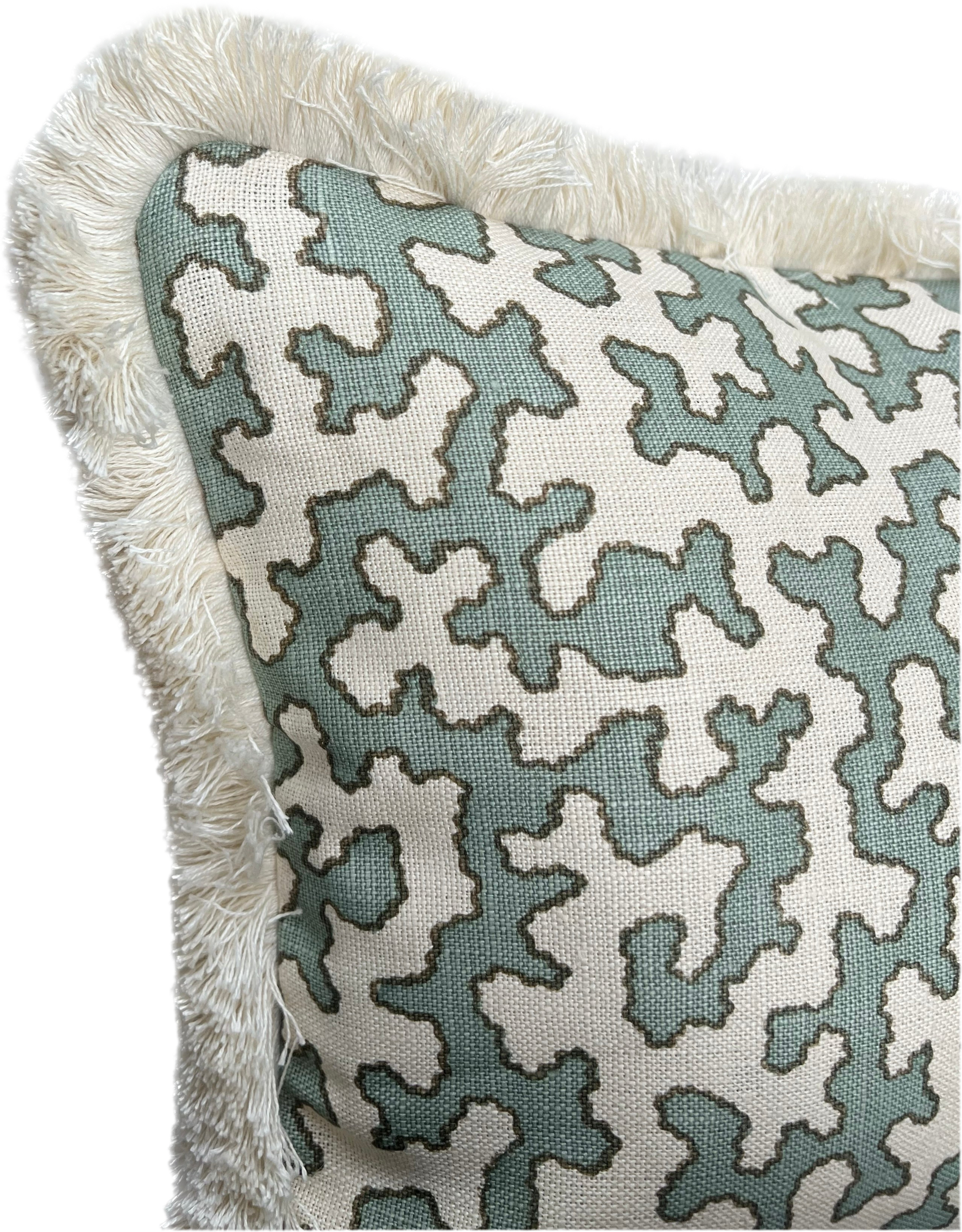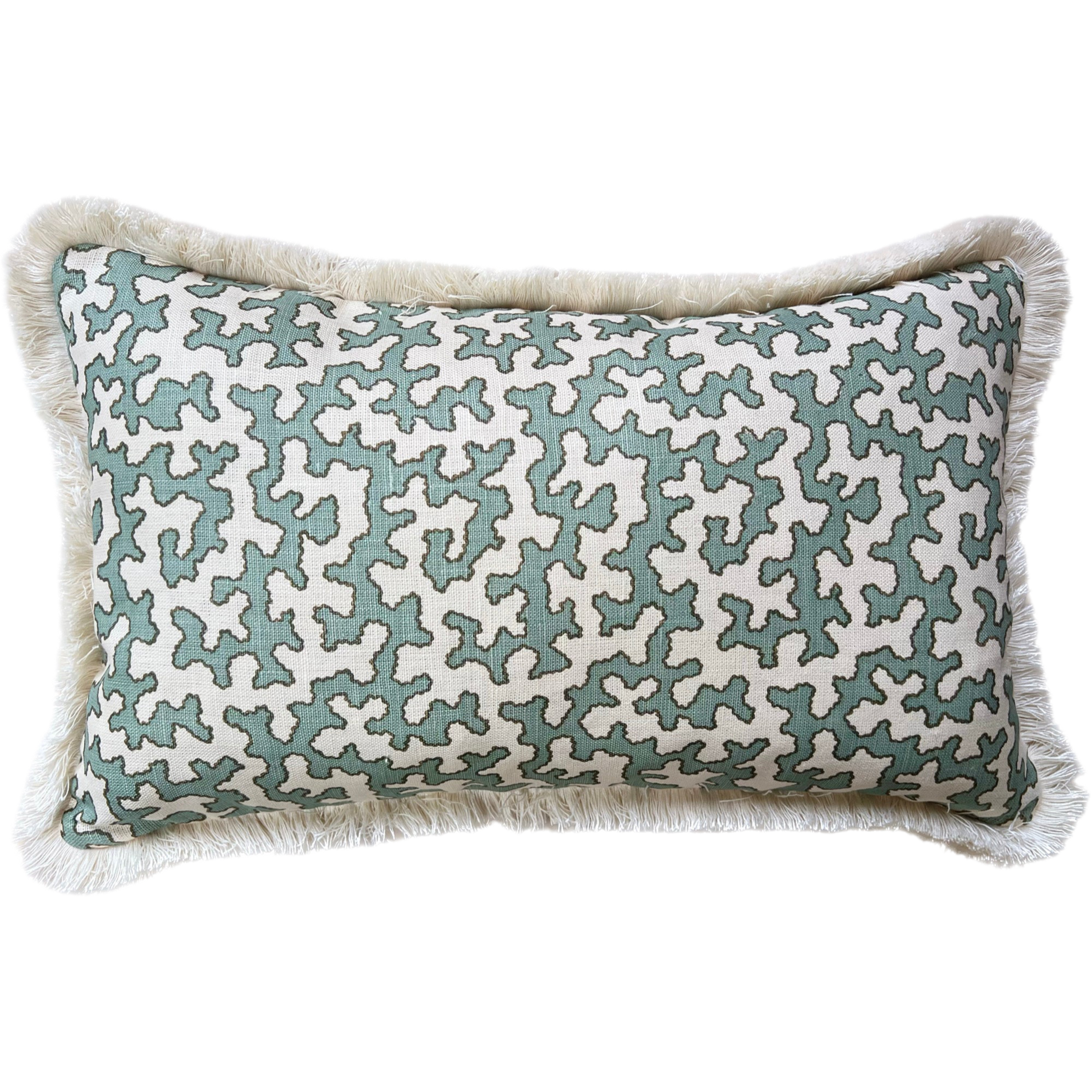 Colefax & Fowler Aqua Squiggle Fringed Lumber Cushion