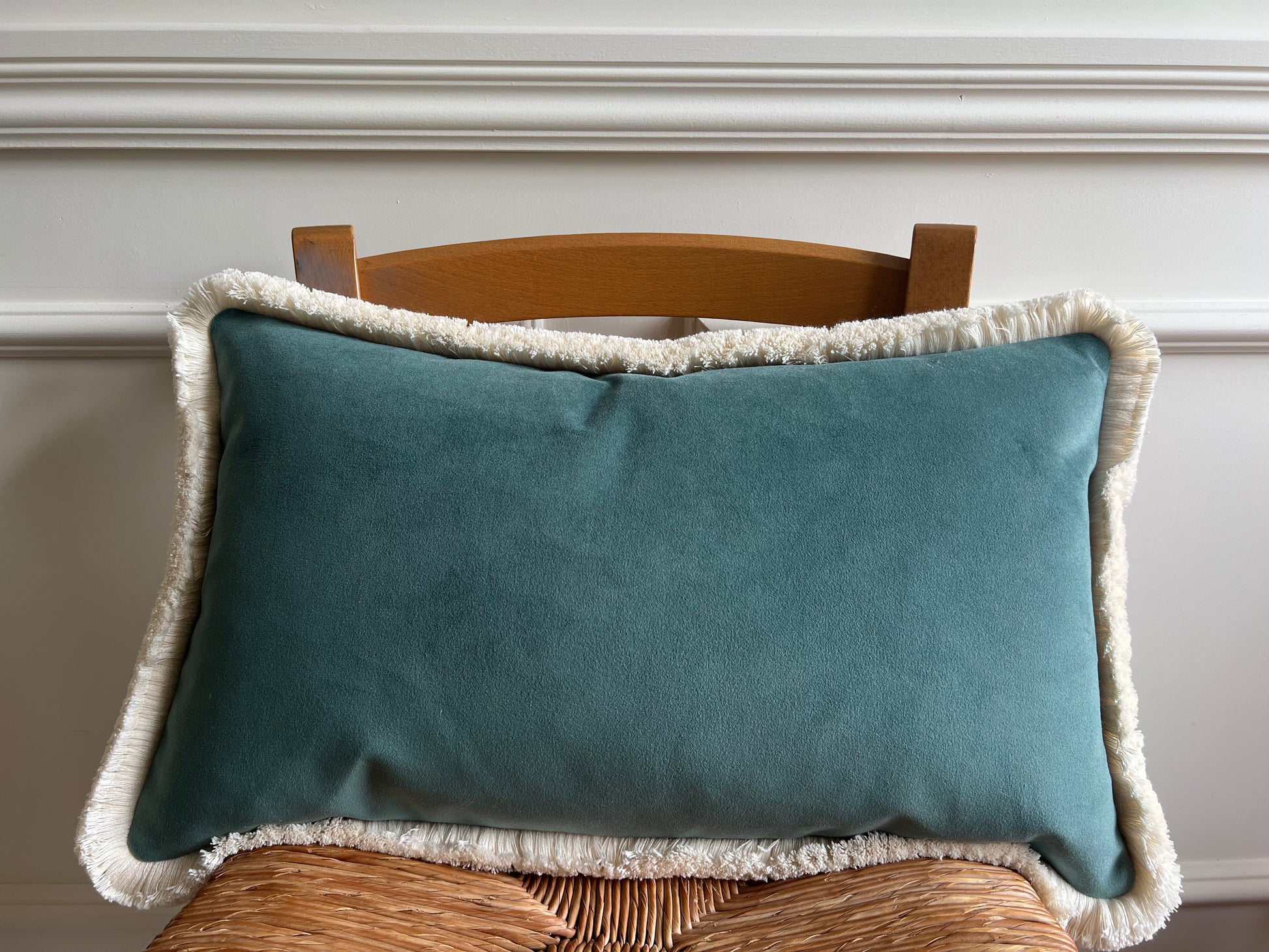 Aqua colourway with a soft, thick cream fringe and luxuriously soft aqua velvet back