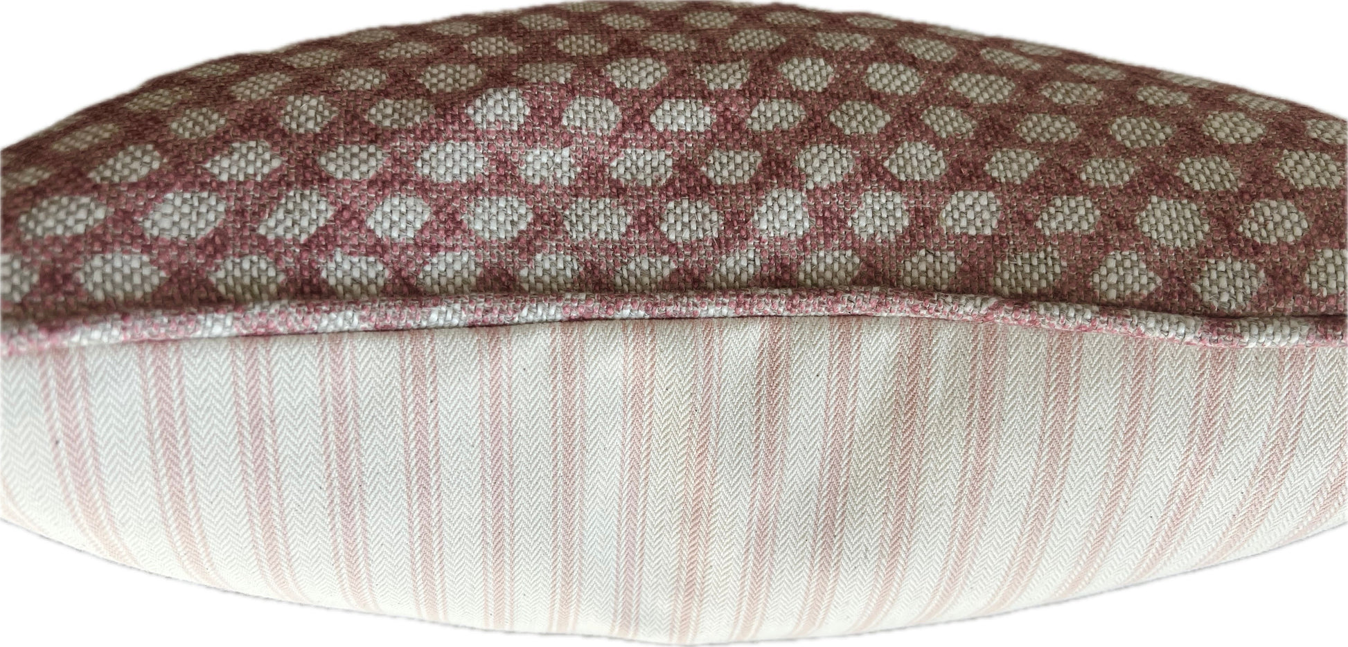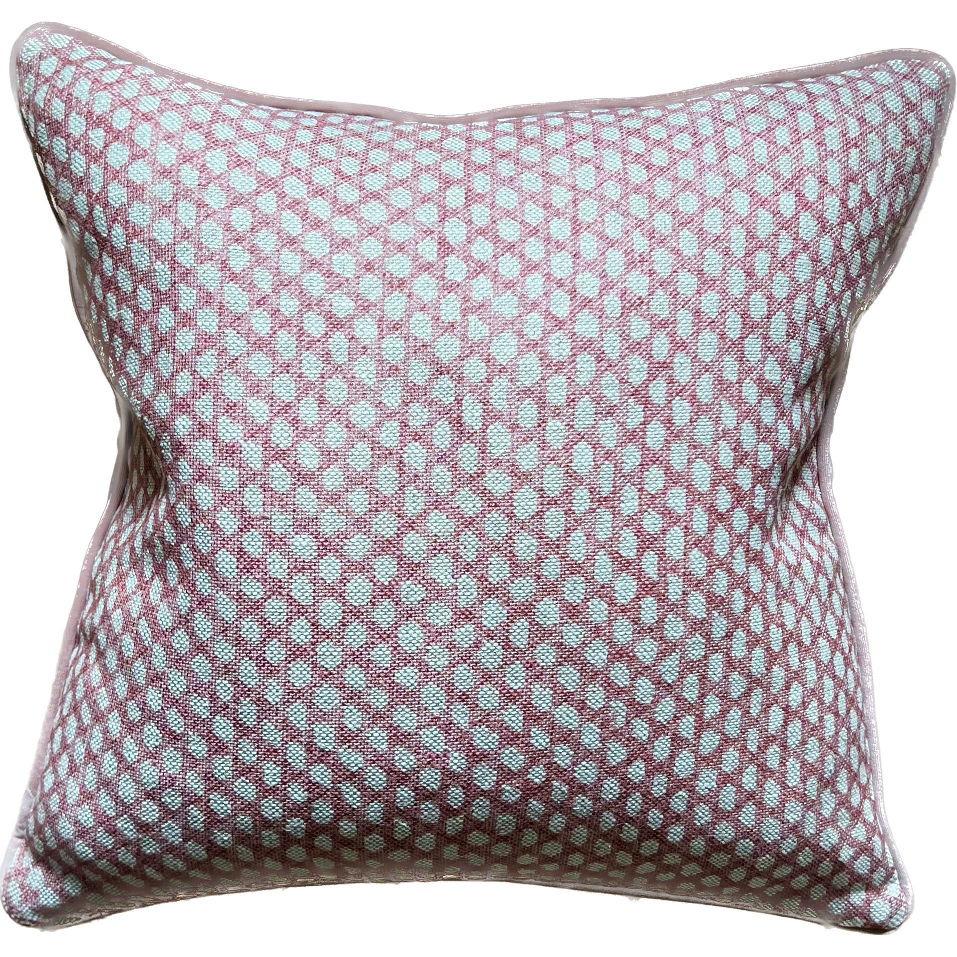 Cushions in Fermoie Wicker fabric. Pink N-089 colourway with a lovely soft blush velvet piping / reverse and hidden zip