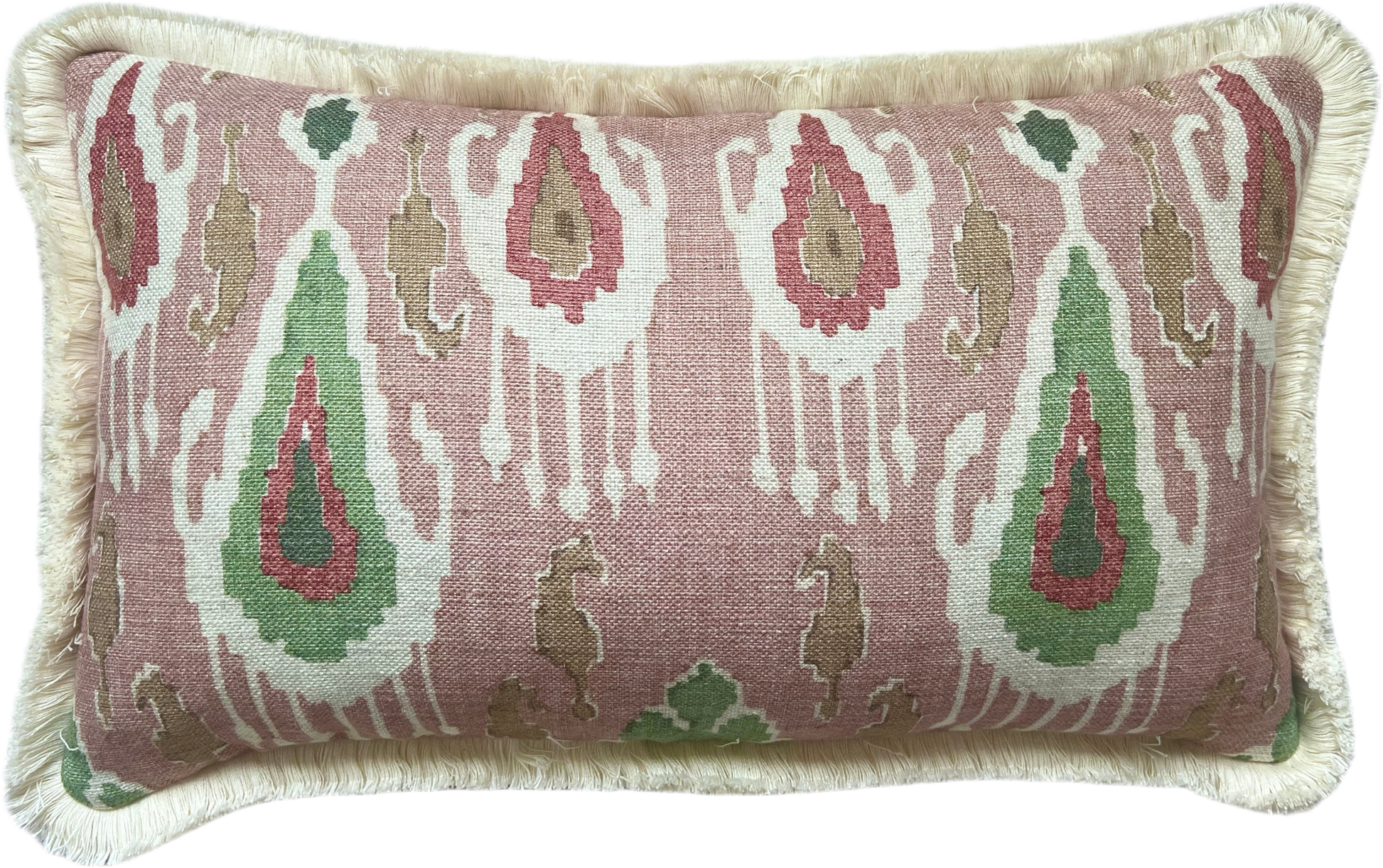 GP & J Baker Ikat Bokhara Rose Green Lumber Cushions