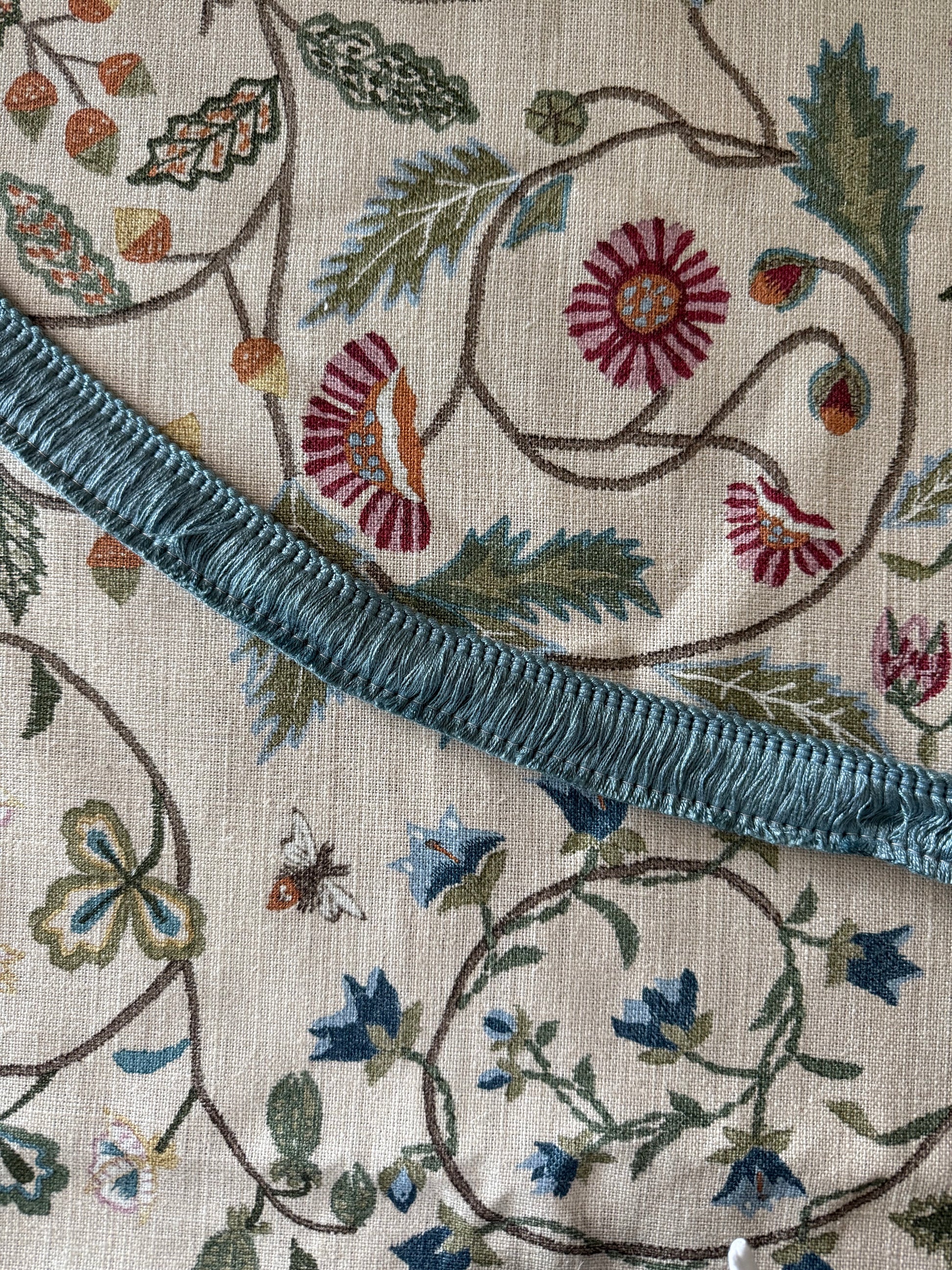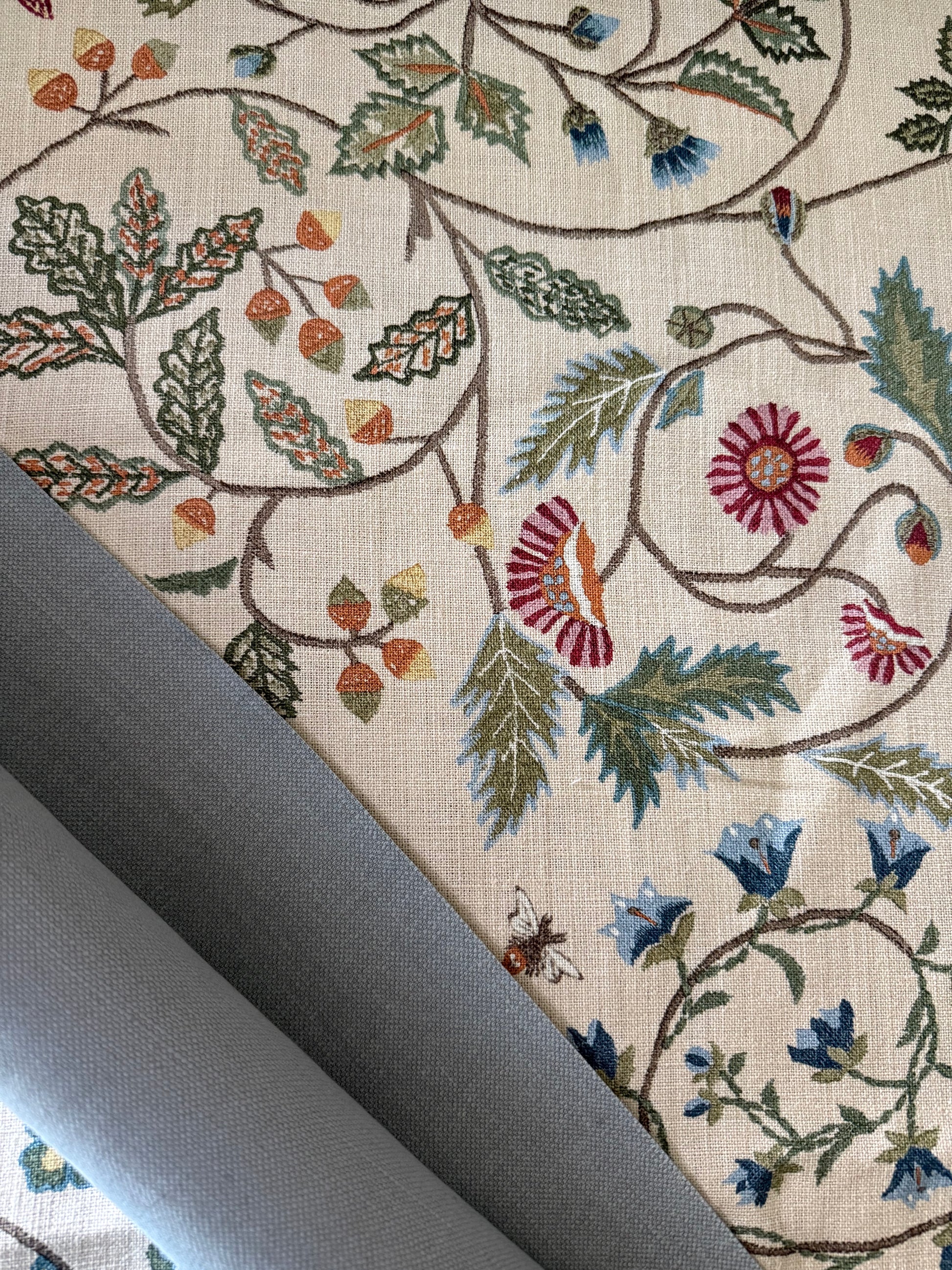 Based on a magnificent Arts & Crafts embroidery by William Morris’ daughter, May Morris. Each circle in the design shows a different wildflower and the fabric is named Windrush after the river that flows through the Cotswolds.