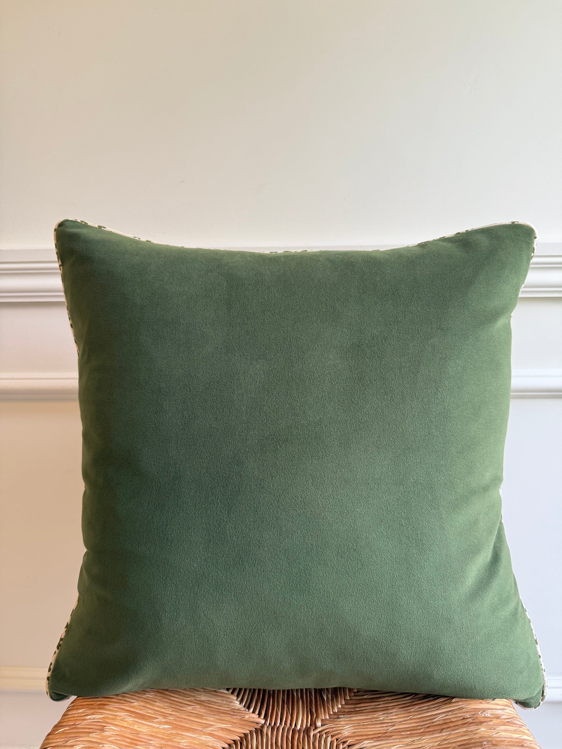Cushions in Sibyl Colefax & John Fowler Seaweed fabric. Khaki colourway with piping.
